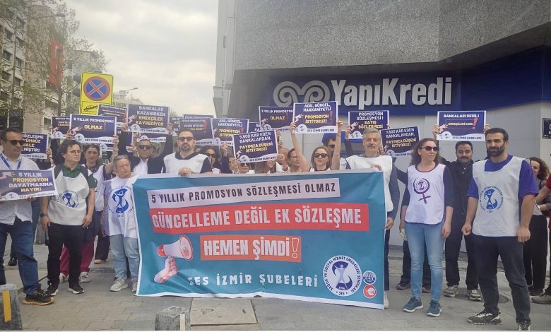 Sağlıkçılar Banka Önünden Seslendi: “Promosyon Hakkımızı İstiyoruz” SES İzmir Şubeleri yaptığı açıklamada, anlaşmalı banka Yapı Kredi Bankası önünden yetkililere seslendi,…